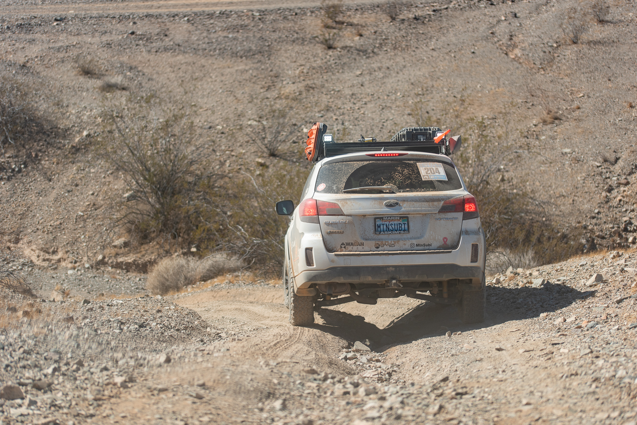 The Crosstrek was flirting with dangerously high temperatures from continual high RPMs up the grade; Noelle walked over and let me know that they'd be parking for a while, and then turning around and heading back to pavement. The wash would be vastly simpler on the way down, with gravity assisting in carrying momentum, but the course still had miles to go deeper into the desert. I had made it this far. I had to go further. Journalistic integrity, admittedly, was fading. I'd seen enough for a compelling story, but adrenaline took over, and I wanted to venture deeper into the unknown.
