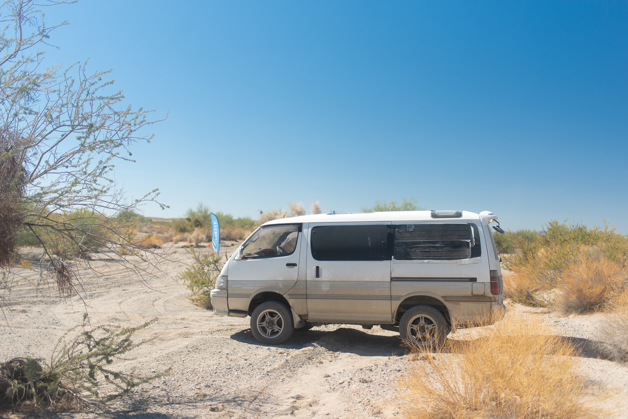 It just so happens my Toyota Hiace I brought down to Vegas is no slouch for a domicile. Full-time all-wheel-drive, 3.0 liter turbodiesel engine, and a two-inch lift kit round out the van that's been my home for the past four months. I've driven and camped on BLM trails before with it — surely I could follow along for a day.