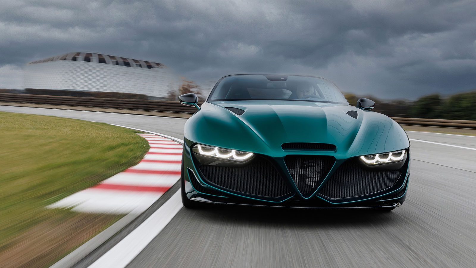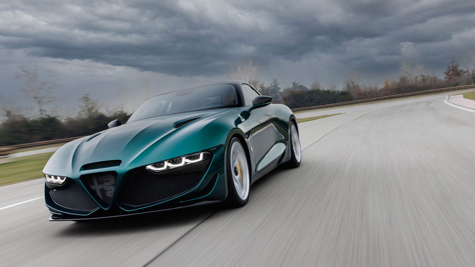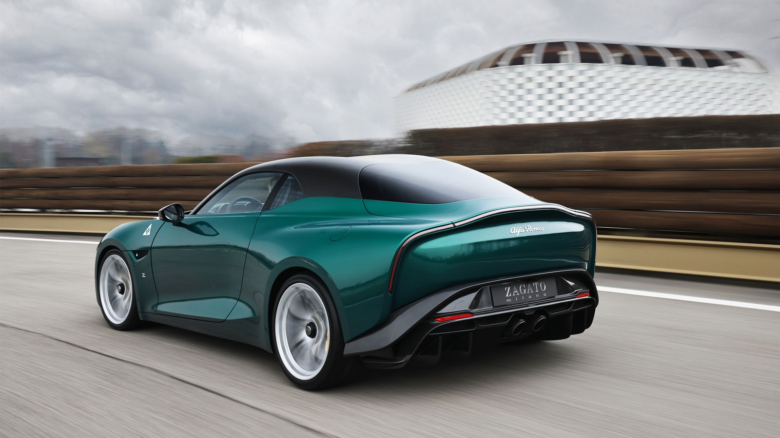 Once shortened, Zagato went about transforming the family sedan into a sports coupe. That meant cloaking the car in a retro-inspired, carbon fiber body that drew influences from past Alfa Romeo collaborations.