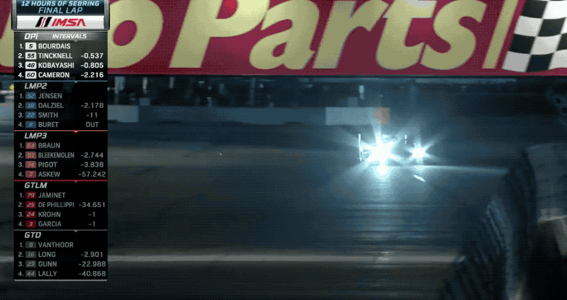 But that wasn't meant to be. He and a GTLM machine made contact, which sent Dixon two laps down. Bourdais said he felt that was his chance—it was now or never. He pushed his way to the lead and held it to the end, even though the car lost the entire rear wing.