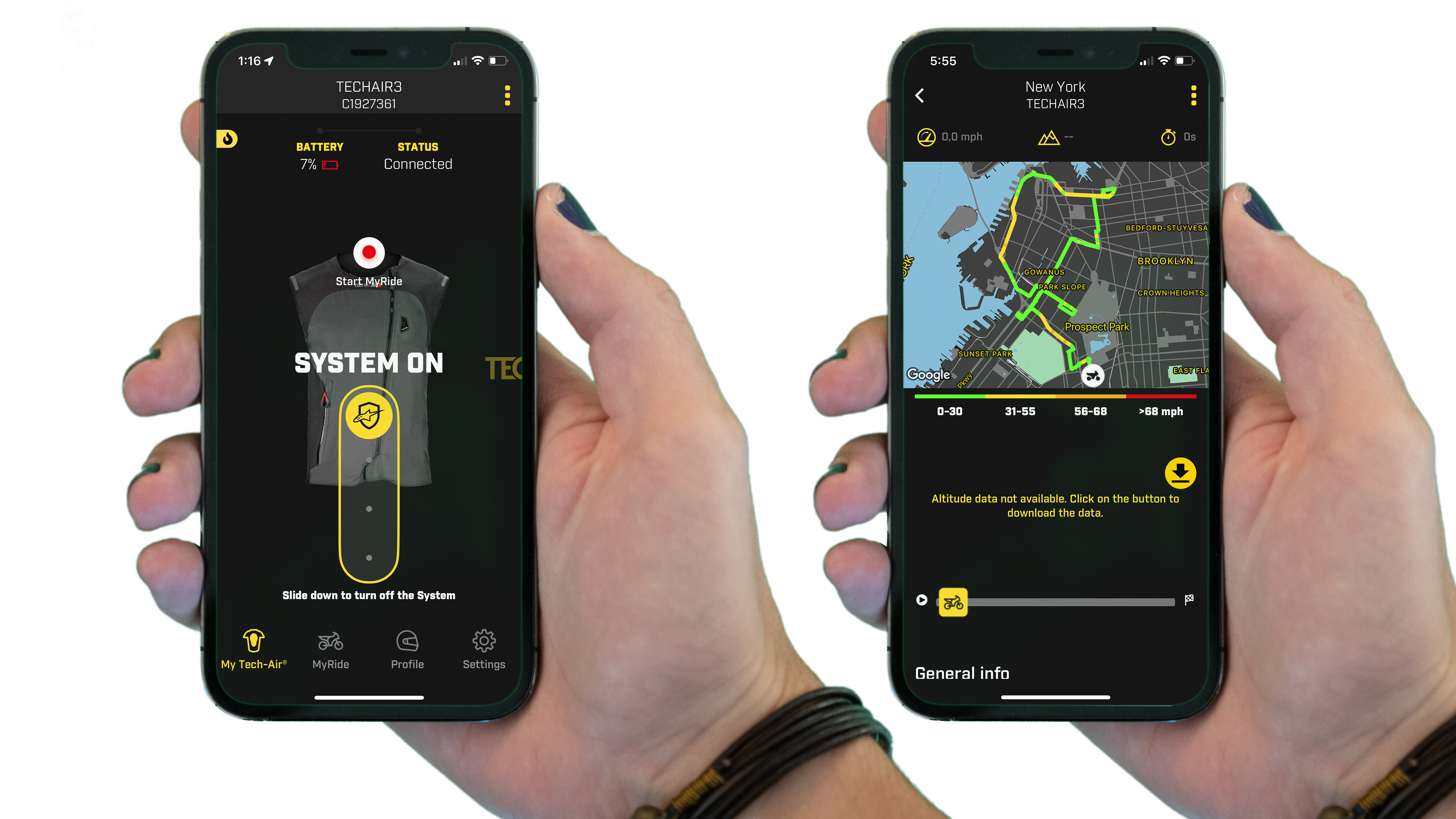 The whole system can be managed through the optional Alpinestars Tech-Air smartphone app, which works more reliably than most device-control apps I've tried. It allows you to turn the airbag vest on or off, check the vest's battery level, and even track ride routes, so long as you remember to stop and start the tracking for each ride. The app also handles any firmware updates Alpinestars may send your way, all through the vest's Bluetooth connection.