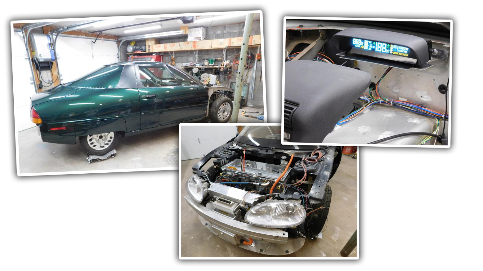 The Beata EV1 is usually in some sort of flux, building and/or rebuilding one system or another. Currently we are working on RXT-G style series-hybrid modifications (see this site's prototypes section) as well as several other wiring and systems projects.