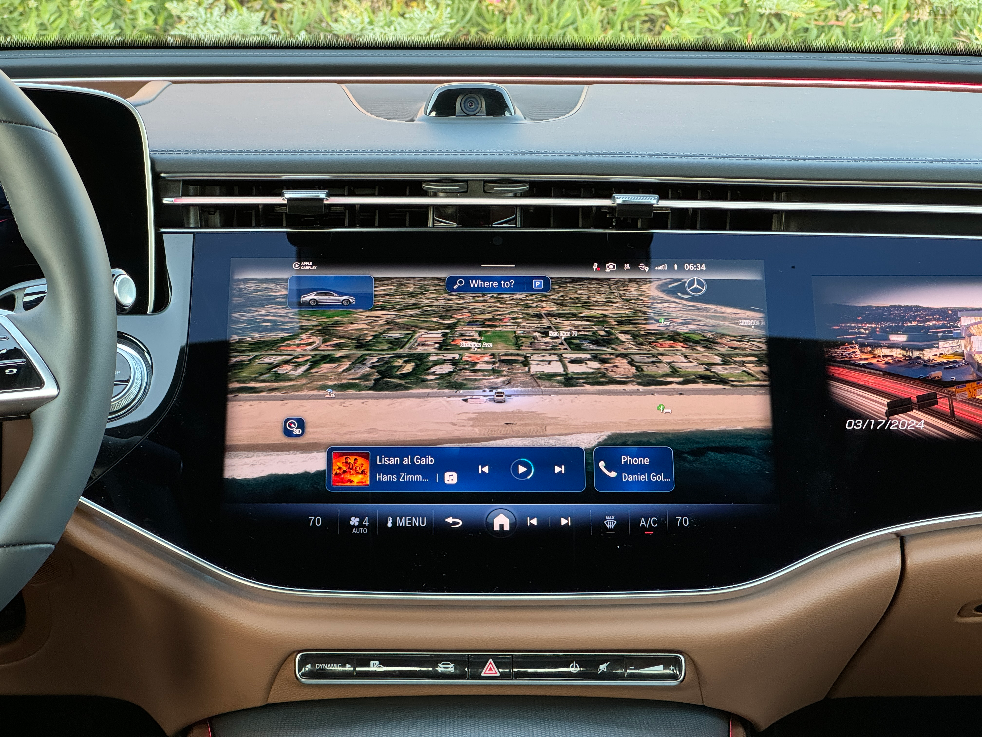 I don't mind it in person, but then I rarely get annoyed by a tablet-style dashboard screen. The one in the E-Class is nicely positioned to prevent glare, and it doesn't get obscured by the steering wheel.