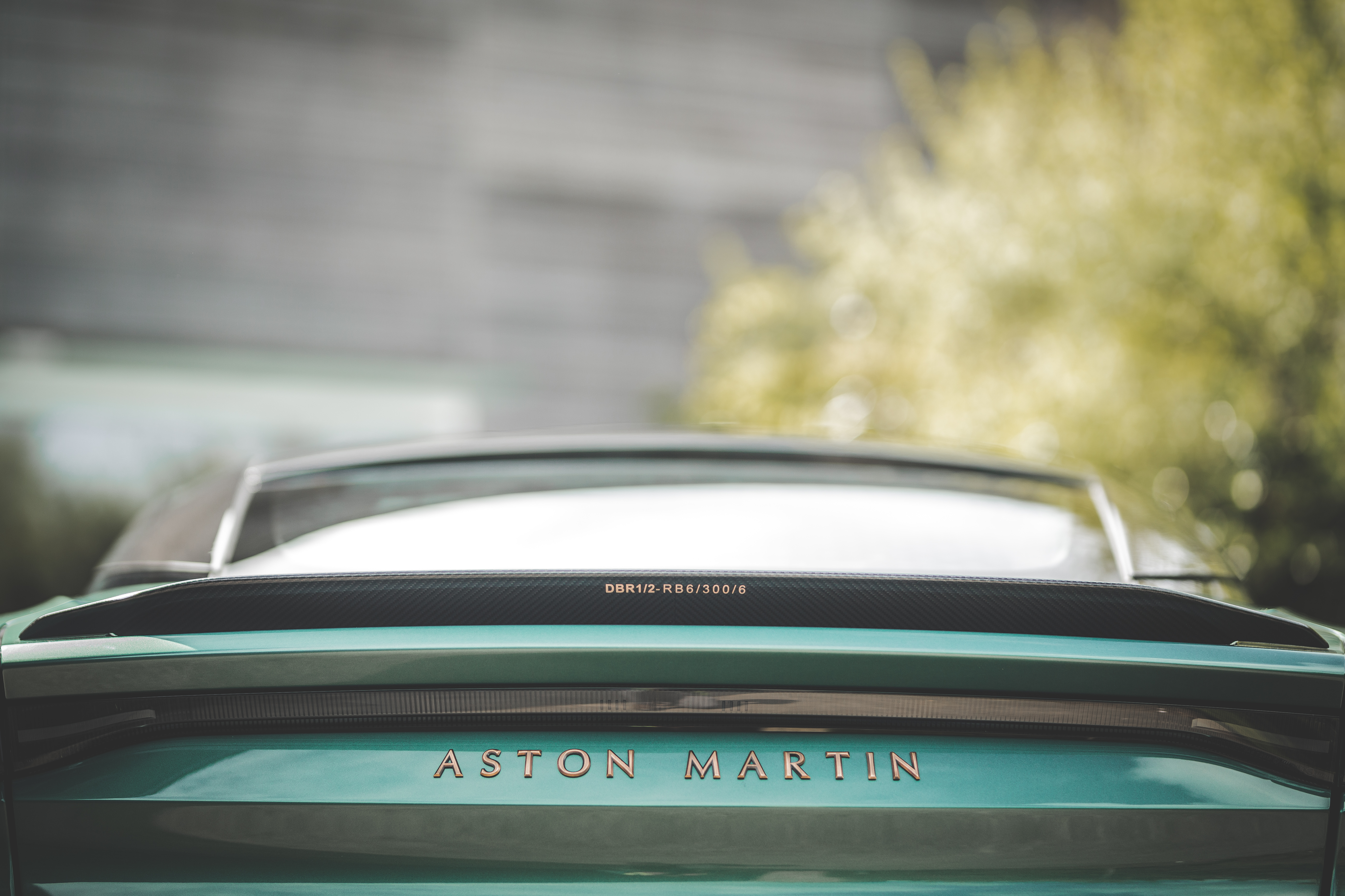On the inside, owners will be treated to bronze shift paddles, switches, and dials, as well as interior fabrics that mimic those of the racing car, and seatbacks embroidered with "59 Edition." Further the rear wing—excuse me "Aeroblade"—of each DBS 59 is emblazoned with the chassis number and engine number of the Le Mans winner.