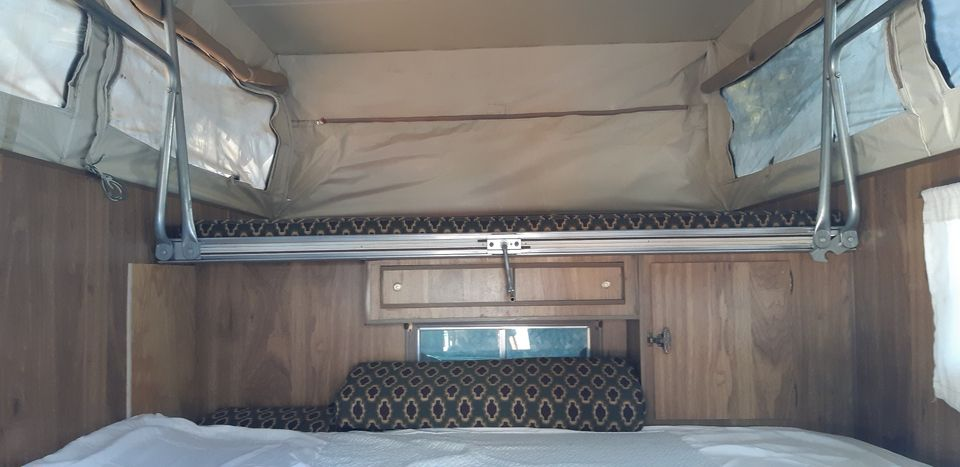 The seller says this project pop-up camper will fit either a full-size or compact pickup truck.