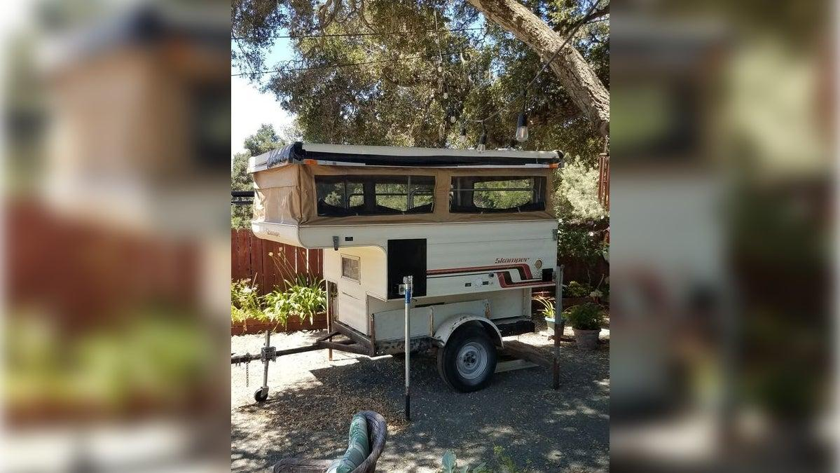 Other issues are some tears in the pop-top screening and a leaky roof that needs more than just duct tape to fix. Those don't appear to be insurmountable problems. Countering those problems, the camper does come with a small trailer (albeit currently un-licensed) and four working legs for stand-alone support.