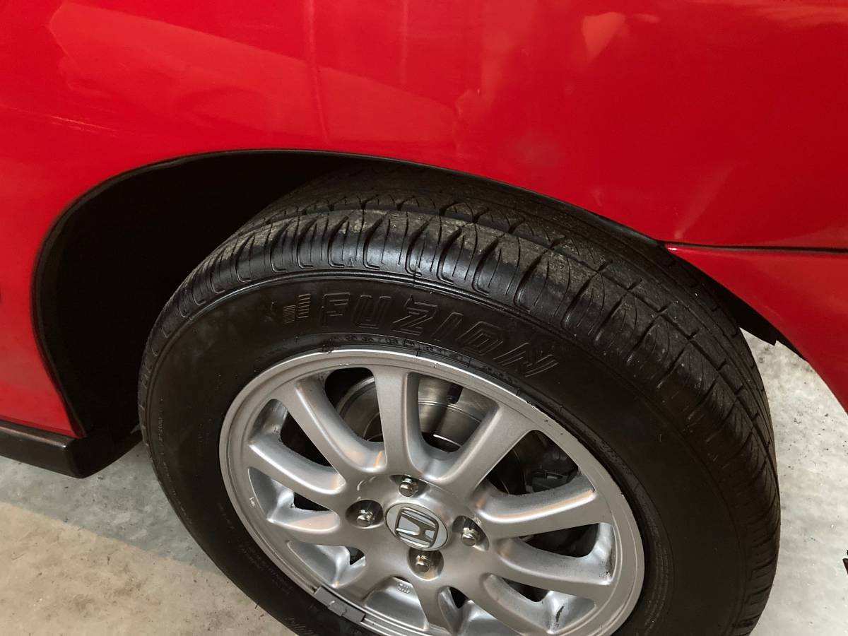 The car that is wrapped around those pieces looks to be in pretty nice shape for its age. An impressively low 65,500-mile lifetime likely has had some role in that. The bodywork looks solid and free of any major boogers beneath its arrest-me red paint and fade-free trim. Factory Honda alloys underpin, and while they look to also be in fine fettle, they are marred by the balancing weights clipped to the outer rim. Those wheels wear Bridgestone/Fuzion tires which in true momma bear fashion, are neither the best nor the worst you could buy.