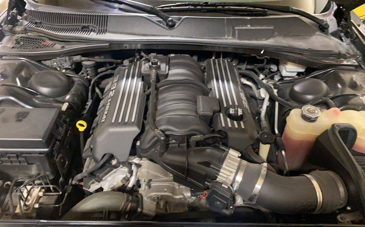 The upholstery was done by Katskin and includes gold stitching. There's a serial plaque on the dash but the seller doesn't bother to tell us where this car sits in the production run. The ad does note that no one has bothered to pull the protective plastic off the stereo yet. All of the 50th Anniversary accouterments seem to have been added by GSS Supercars, a modding shop that also gets its own billing on the Challenger's hood and flanks.