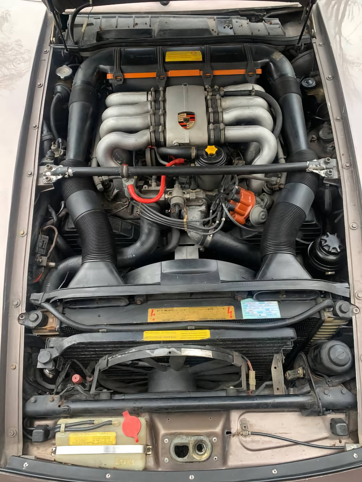 Probably the car's star attraction, however, is the dog-leg five-speed manual doing its thing in the rear transaxle. Supposedly fewer than 20 percent of 928s were delivered with the manual making them truly the odd ducks of the family. A gander at the engine bay indicates that it looks clean and without any evidence of monkey business. It even seems to have all its plastic bits intact and its original radiator.