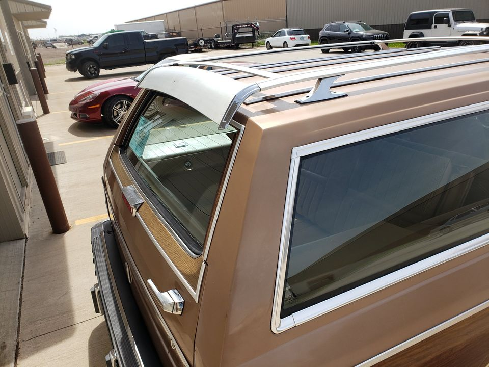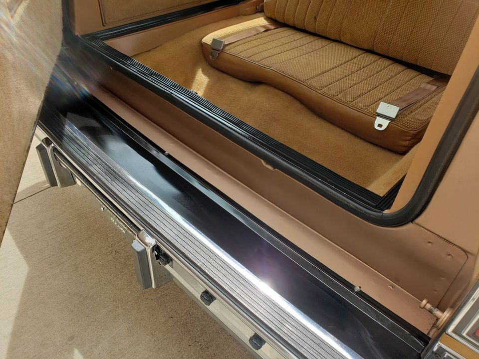 Other notable features of this Custom Cruiser include an incredibly modest 71,874 miles on the clock and an interior that looks as lightly worn as a Sunday-go-to-meeting suit. Outside, the car does show some age in the fading of the clear coat on the acres-large hood and on the roof. The Light Beechwood Metallic paint underneath looks okay in most areas and is complemented by copious amounts of photo-finish vinyl passing itself off as woodgrain. According to the dealer offering the car, it is all rust-free underneath. Oddly on a car so neat and tidy, the rubber rub strip on the rear bumper is missing. Equally suspicious, the snood under the bumper is black rather than body color. Both imply something has happened back there.