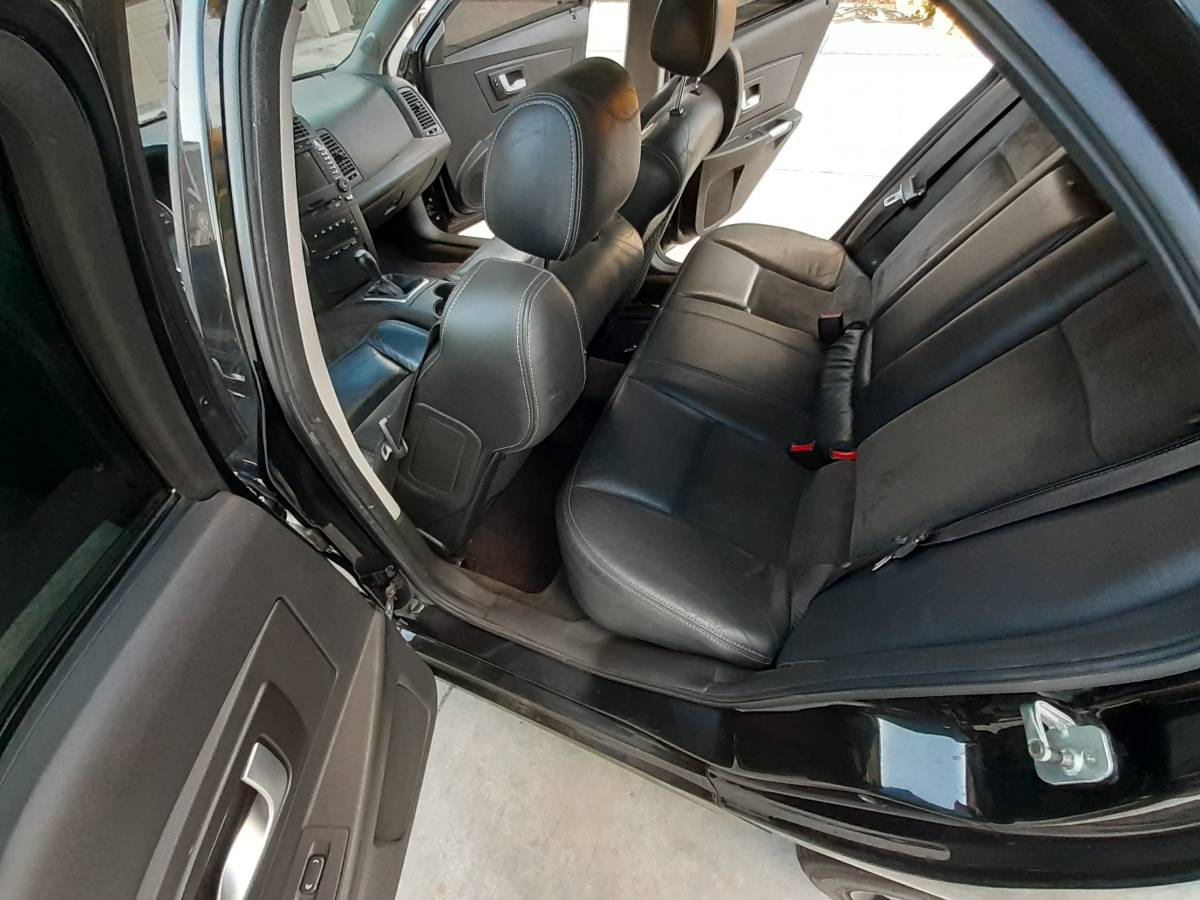 The interior is upholstered in a mix of leather and suede and is also, appropriately enough, all black. The car carries a large-for-the-era center stack screen and an air freshener hanging from the rear-view mirror. Hopefully, it's not a pumpkin spice aroma, I hate that. Everything looks perfectly serviceable here, albeit a bit tight in the back, a result of the Caddy's Sigma platform being RWD and just 113-inches between the axles. A Bose stereo system — also described as loud — provides the tunage.