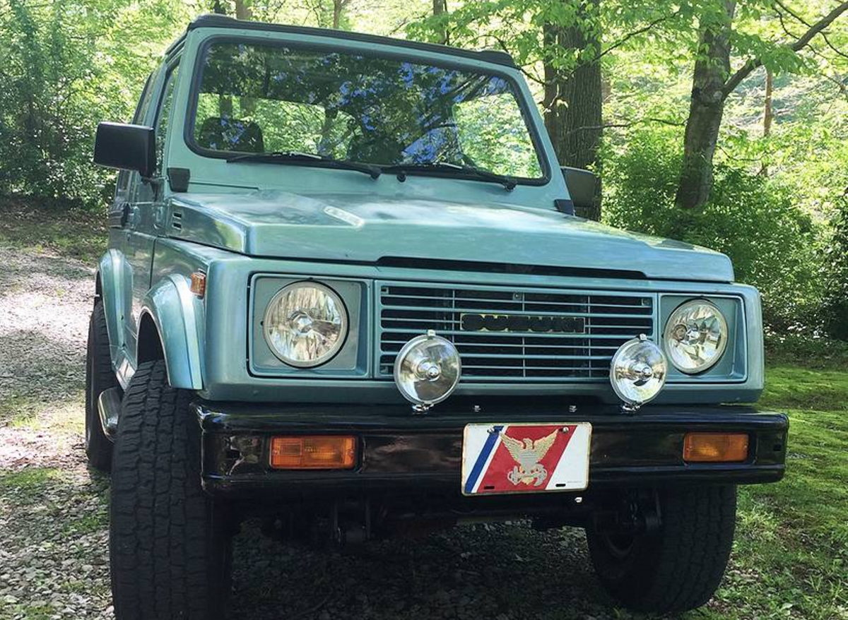First off, this is one clean Samurai. The seller claims he bought the little 4WD to ease his trek up a steep driveway in winter but then felt it too nice to ever let out in the snow. Instead it sat in a garage where its custom paint and Suzuki-branded hard caps could be protected from inclement weather.