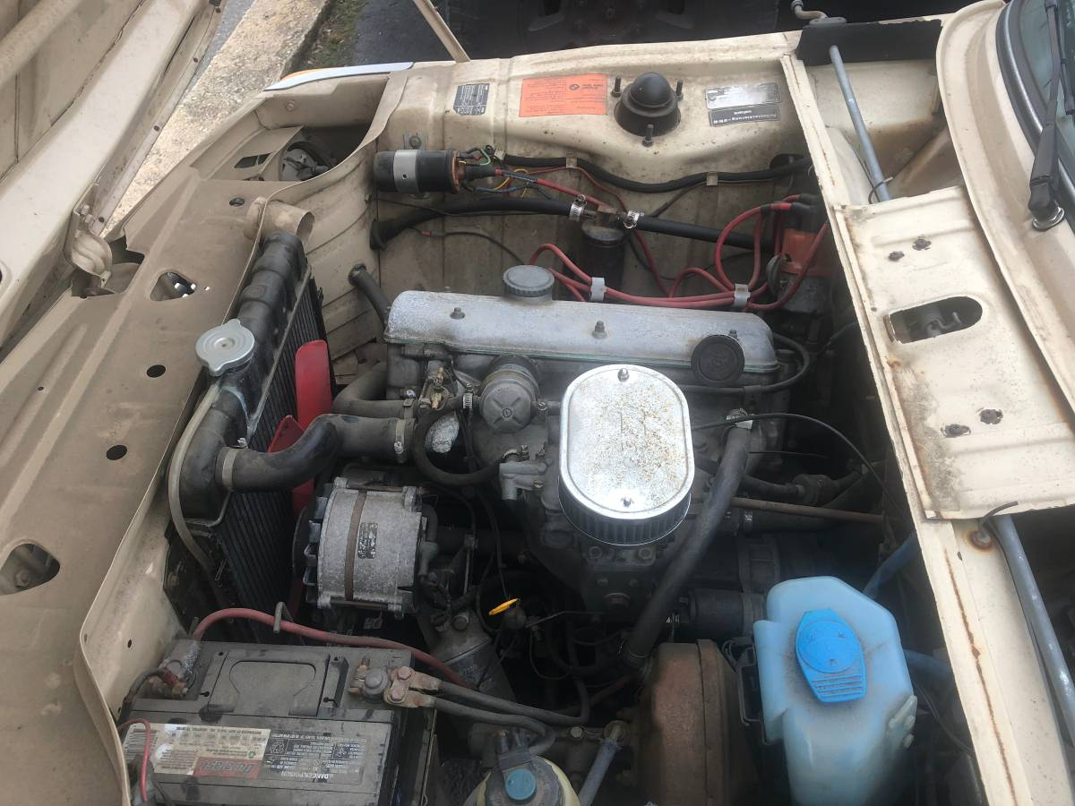 The paint, while not the most thrilling of colors, seems clean and without issue, as does—mostly—the interior. Badges front and rear are faded as they do over time, and there is a knob missing from the original dealer-installed A/C inside. Other issues include the aforementioned seats. Those are wrong for the model, but do look okay in the car. The engine has that puny air cleaner over the carb and no tubing from either the cold air inlet nor a start-up heater over the exhaust. That all might need to be rectified if you live somewhere cold.