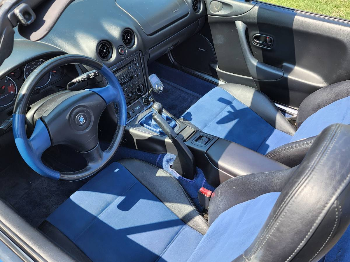 Production was limited to 7,500 cars with each car identified by a fender badge indicating its position in that run. Per its badge, this 1999 Mazda Miata is number 1,026 out of those 7,500. Like all the others, it sports Sapphire Blue Mica paint and chrome-plated alloy wheels. For the Anniversary Edition, Mazda also gussied up the interior, giving the special edition blue suede inserts in the seats and faux carbon-fiber trim on the center console, as well as an up-rated Bose stereo.