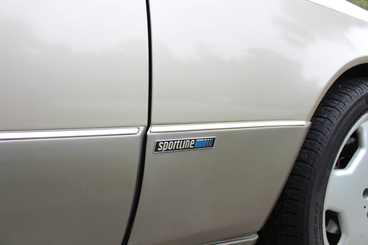 The Benz looks to be in very good shape, wearing all its extensive and very '90s cladding and the special Sportline badging on each flank and the shift knob. AMG Monobloc wheels add a bit more panache to the car's already classic stance.