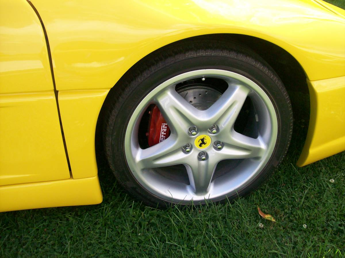The wheels are aftermarket and like the car itself are a homage to real Ferrari rollers. Behind those site brakes are called out as having four-pot calipers in front, so those are an upgrade as well. They've been painted red and carry the Ferrari branding for some additional bling.