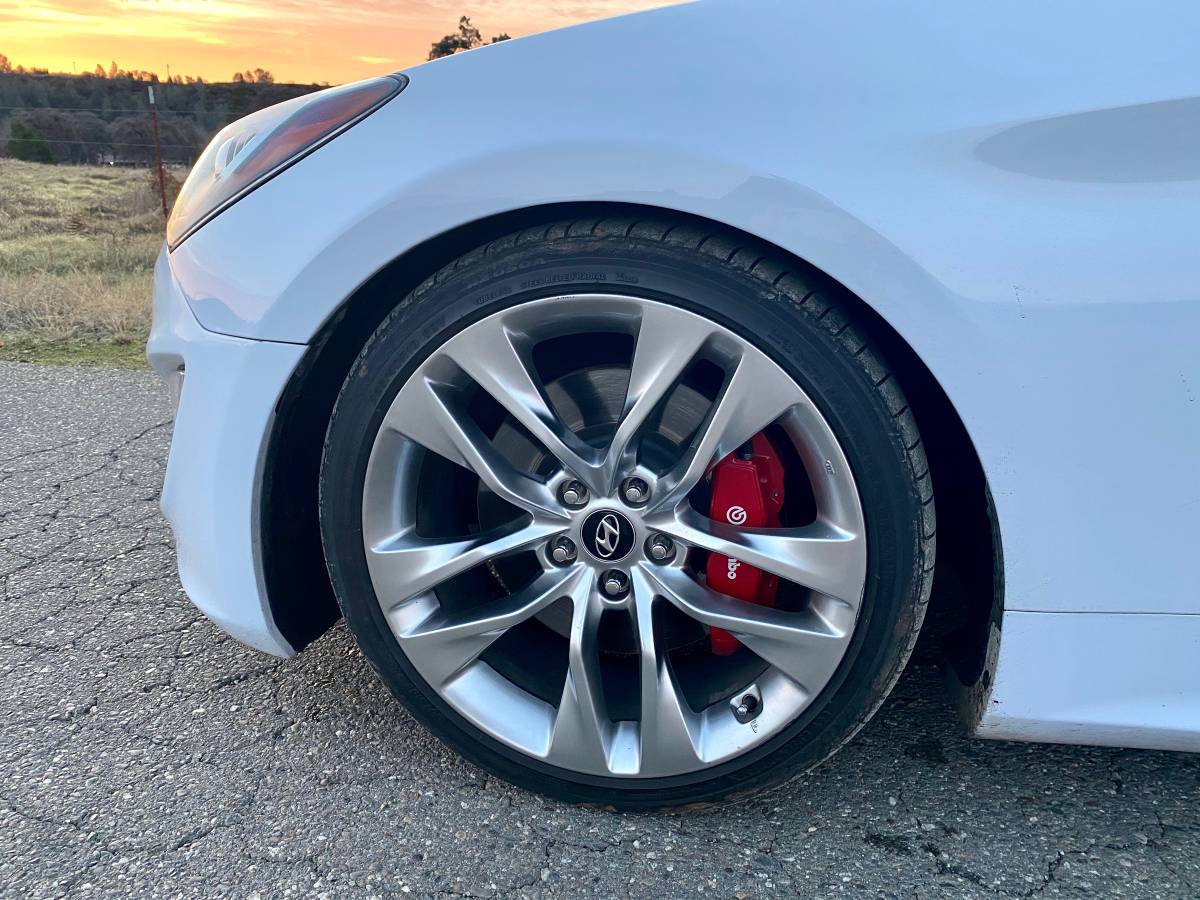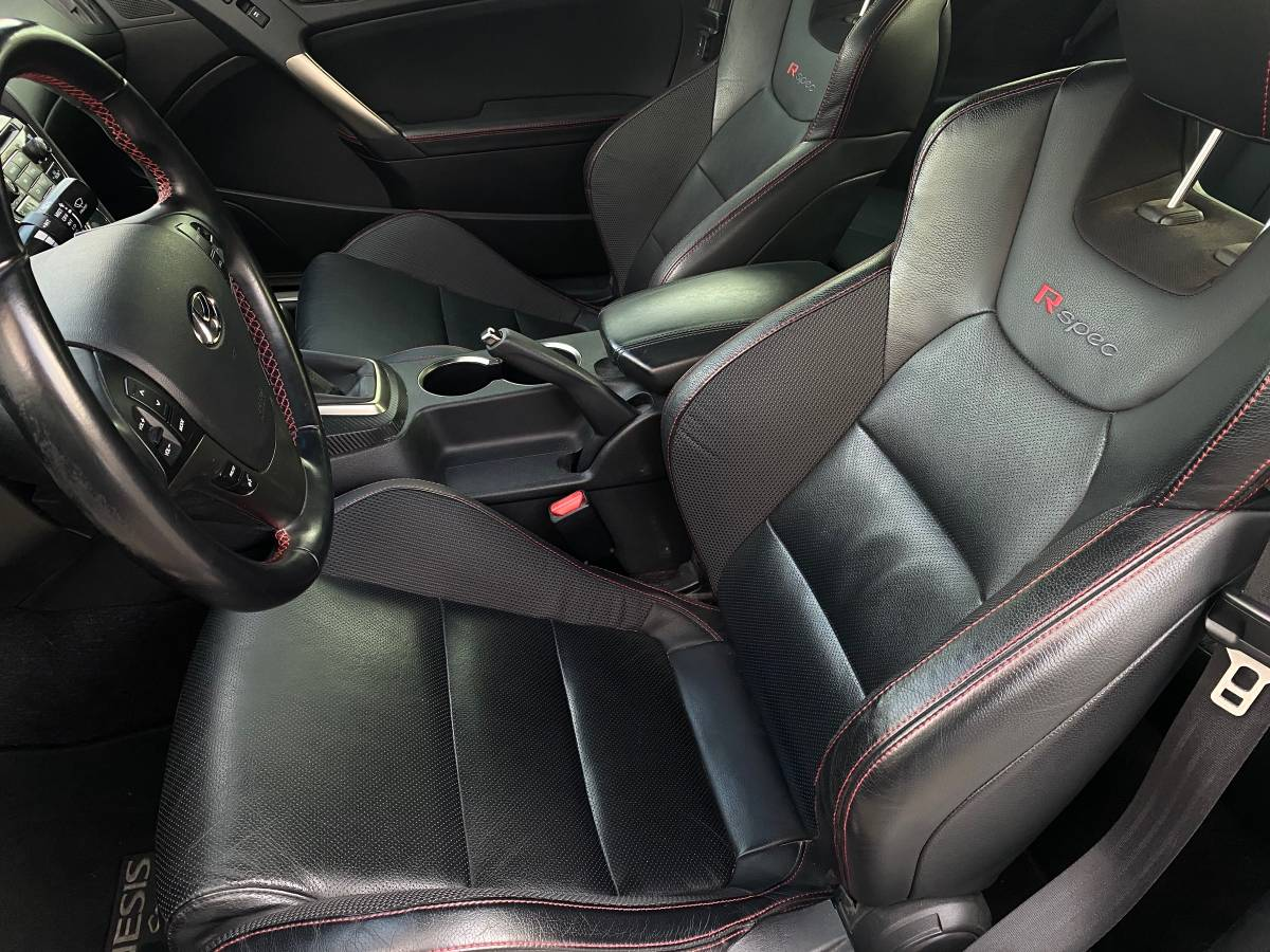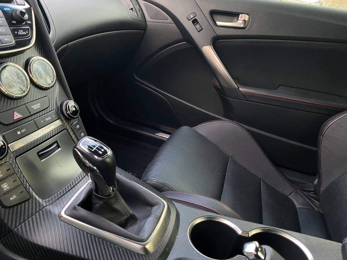 This 2014 R-spec is powered by the top engine at the time, Hyundai's 348 horsepower 3.8-litre direct-injection V6. That's mated to a six-speed manual which sends those ponies afterward to a Torsen LSD pumpkin and onward to the fat rear tires. The R-spec also received a suspension upgrade over the standard Coupé and Brembo brakes behind the model-specific 19-inch wheels.