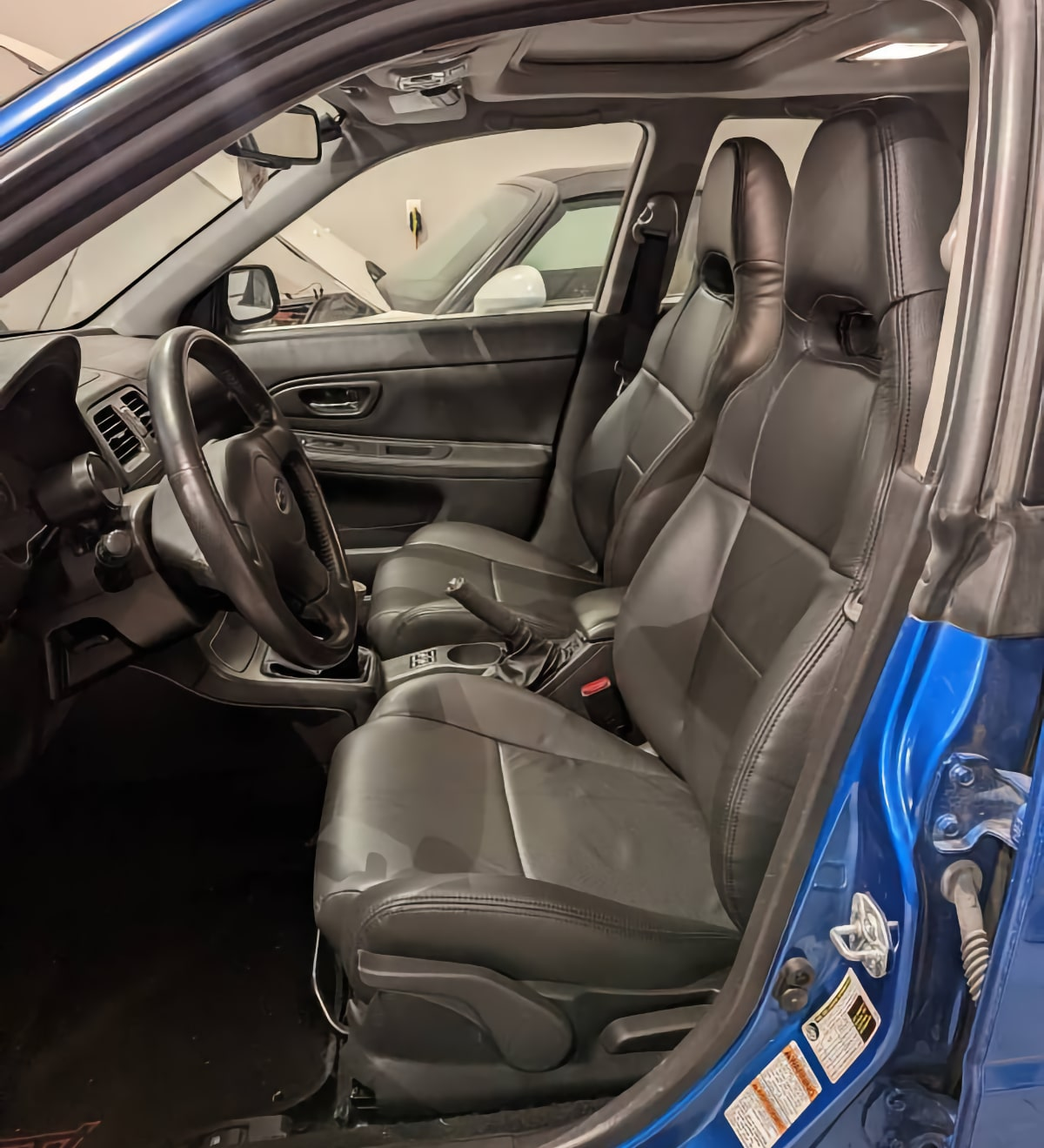 We can all get over that since few of us are actually 12 years old, and because the rest of this WRX seems laudably well-kept for its 15 years and 150,000 miles of use. The car is painted Newport Blue, which I think most of these were, paired with a leather interior hued in somber black.