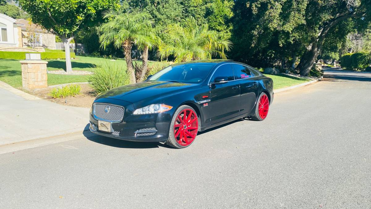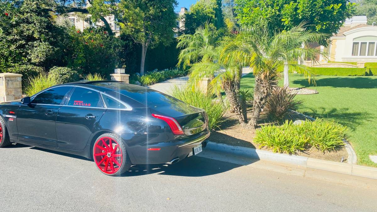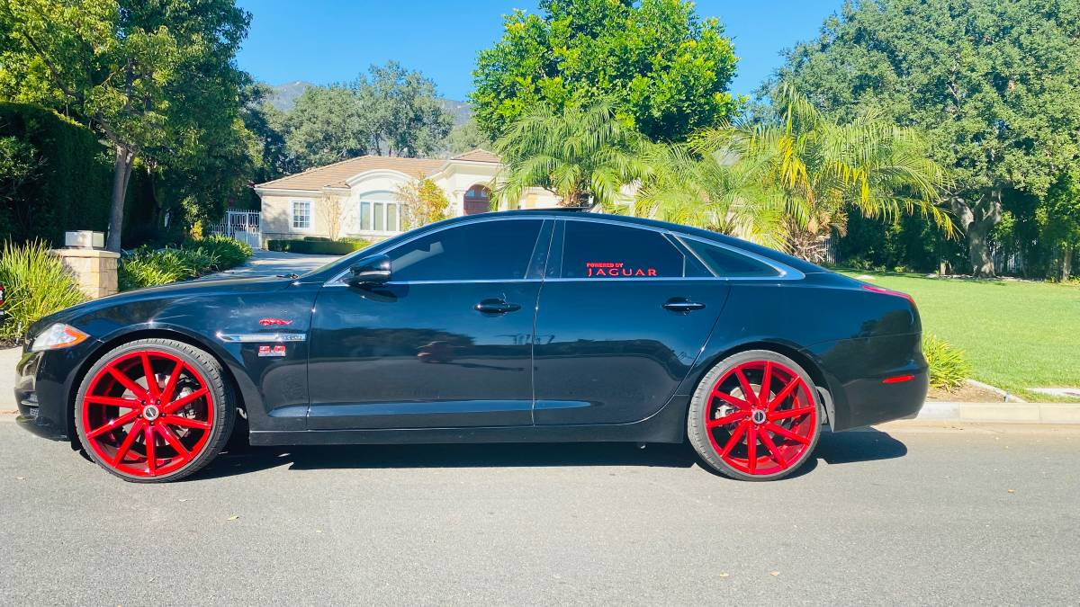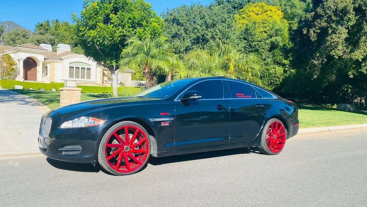 The owner of this 2011 Jaguar XJ has seemingly loved it enough to make it something very personal and special. To do so, they have adorned the car with enormous aftermarket wheels, window decals, and what I think is a 5.0 badge off of a Mustang — all in arrest-me red.