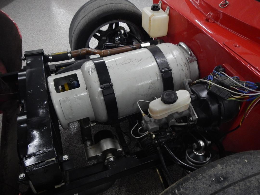 That big-ass mill drinks propane rather than gasoline and that's fed from what looks to be a forklift fuel tank placed longitudinally in the nose. That's a little alarming when you envision a front-end crash, but then the answer to that is simply not to crash.