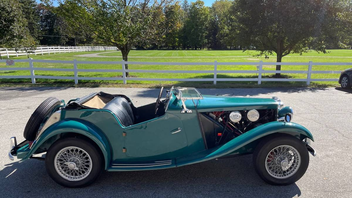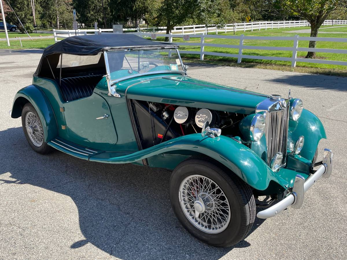 This 1952 MG TD is described by its seller as a "restomod." That's owed to the mix-and-match updates that have been applied, including a 2137 cc four out of a 1964 Triumph TR4A. That engine was rated at 104 horsepower by the factory, or almost double what the MG's original mill was able to offer. The Triumph's four-speed transmission has also been installed so that power won't snap a gear in two at the first angry application of the throttle. An additional benefit of the later motor is the more modern alternator making electricity. That should give the headlamps a little more throw.