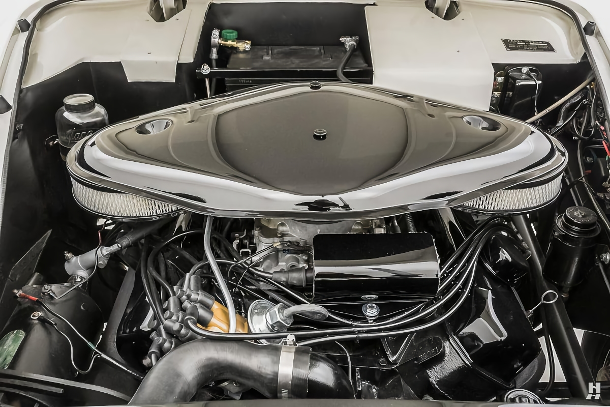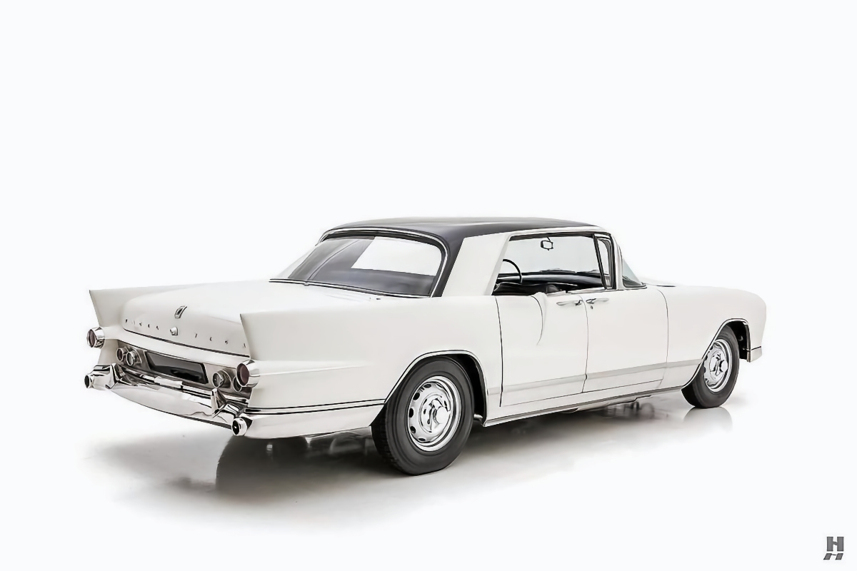 The styling of the Excellence is audacious, carrying many of the design tropes—dog-leg A-pillar, substantial tail fins, and a ton of chrome—that were legion among its American contemporaries. The overall style, however, is distinctly Continental (meaning European, not Lincoln) and actually rather muted in certain of its details like the handsome nose and those knock-off style steel wheels. Apparently, this car was returned to the factory for a few updates over the years, including the switch to a later Wedge 331 engine and the addition of front disc brakes from the HK500.