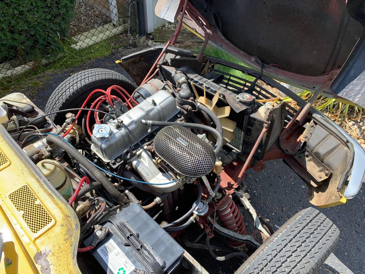 It's not easy to say whether the bigger carb and better exhaust bump up the pony count, but since the Spitfire only put out about 53 horsepower to begin with, anything would be an improvement. It's all said to be running and although not fast, still a ton of fun to drive.