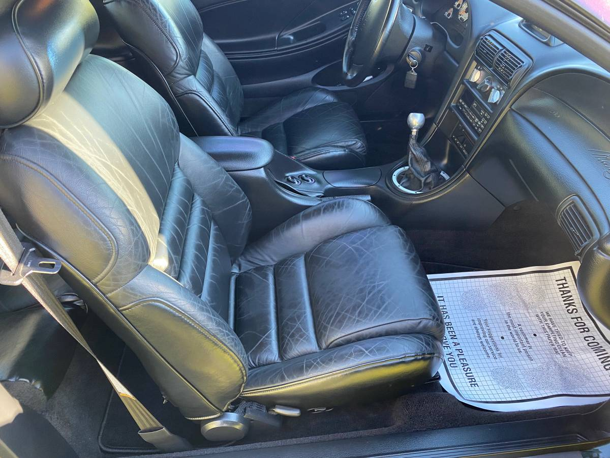 Inside, things look just as good. Out of the 1,999 Mystic Cobras built for 1996, all but nine had the leather seating option box checked. The leather here seems to be in excellent if lightly patina'd shape. And speaking of options, the car also rocks its original AM/FM/CD/cassette stereo in the dash.