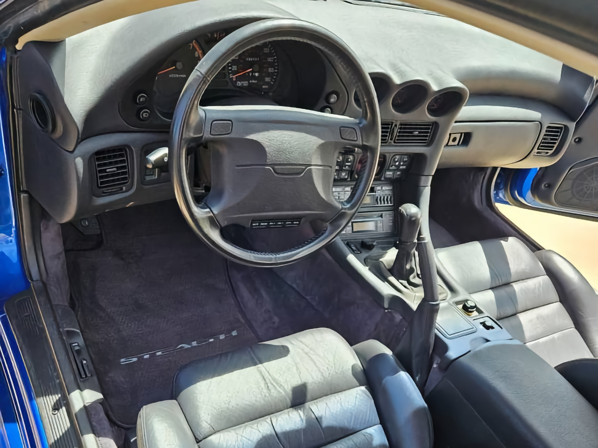 The R/T was the top-of-the-line edition of the Stealth, and the seller claims that only three options were offered on the car: a sunroof, a CD player with equalizer, and leather upholstery. This car is fitted with all but the hole in the roof.