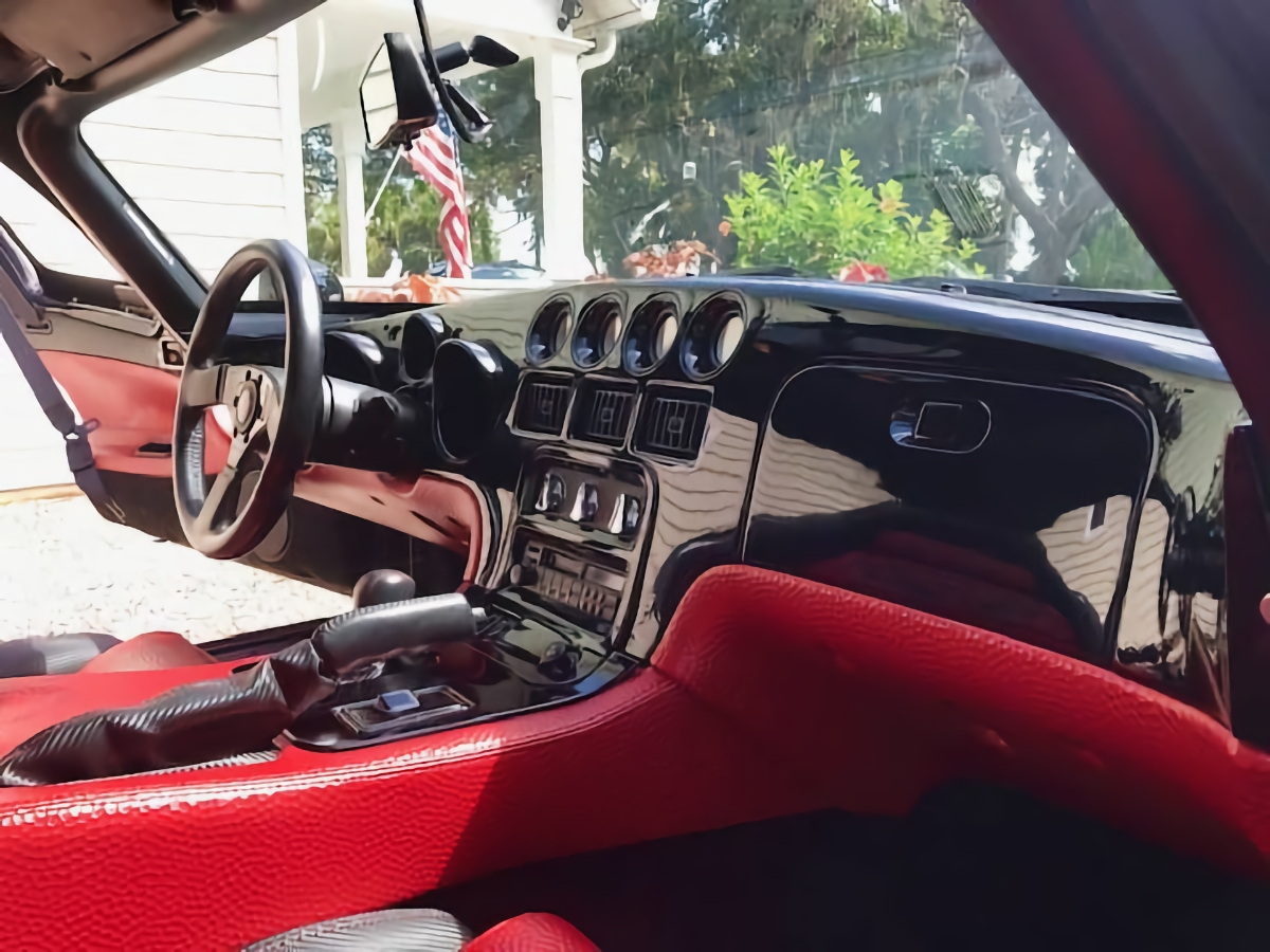 More mods have been made in the Viper's cabin. There, the normally matte finish dashboard has been given a high gloss sheen above what looks to be red ostrich skin wrapping into the footwells, door cards, seats, and console. We have to assume that's a dye job and not off of some sort of uber-rare red ostrich that gave up its skin for this car's interior. Just like with the exterior, the work here seems to have been professionally done and still holding up.