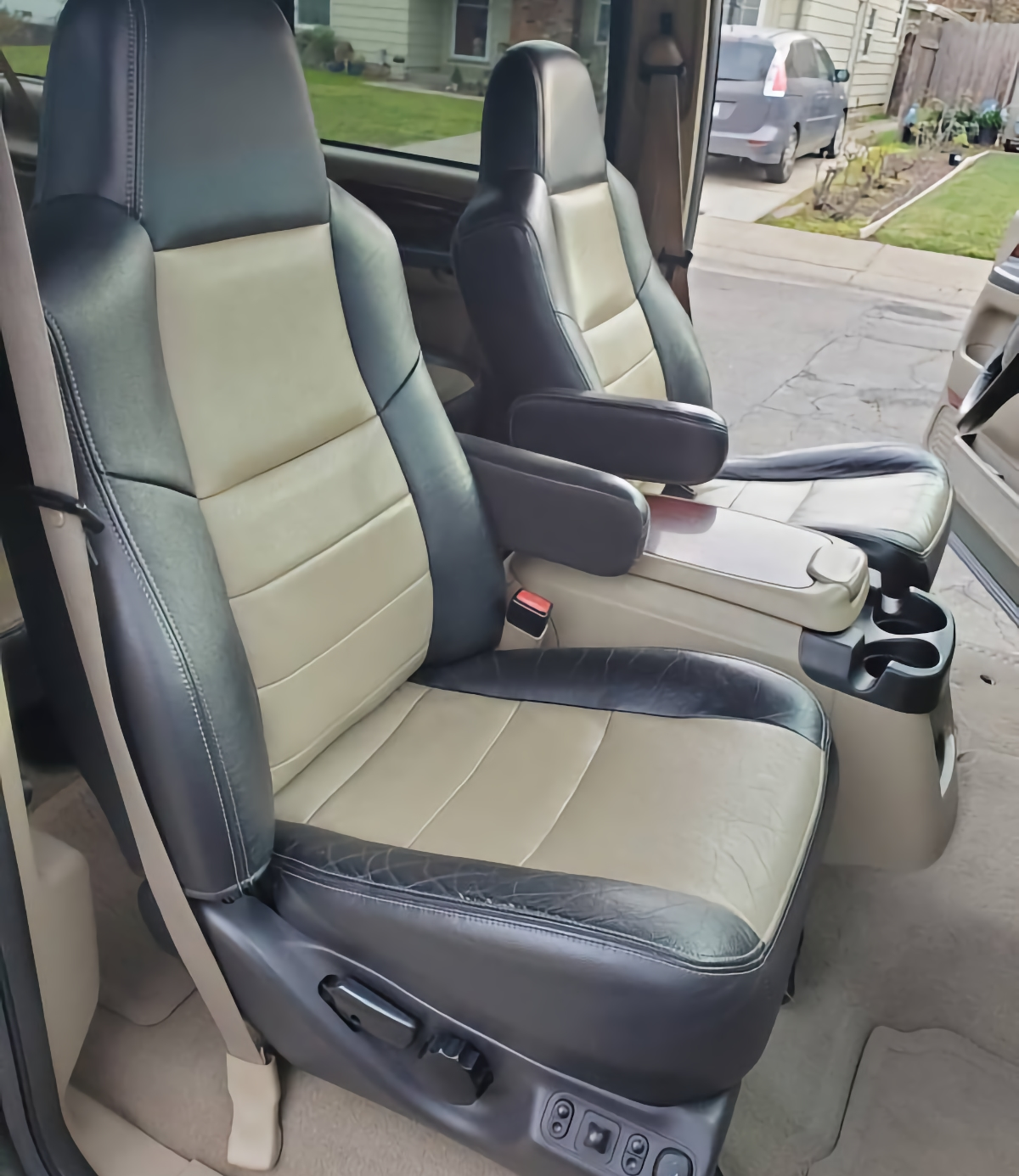 A third row comes with the truck, but the seller doesn't show us that in-situ. Instead, we get a shot of the load area up to the rear captain's chairs. That's a space so vast and commodious that pioneers might set off across the country to stake a claim in it. The rest of the interior is equally nice and even has the original stereo and DVD entertainment system, a throwback to when toddlers didn't have their own smartphones and entitled attitudes.