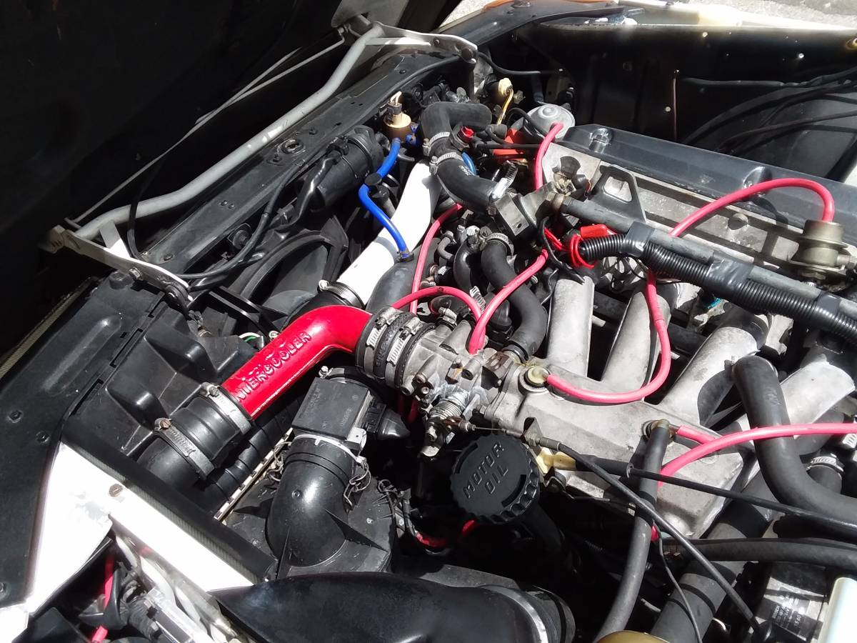 Aesthetically — and aside from the scoop — the car looks decent. It's painted in Cirrus White with a black canvas top over a burgundy leather interior. We don't see much of the cabin, but the seller says exhibits the typical cracked seating surfaces and splits in the dash-top caused by the sun. Another issue to note: both A/C and the cruise control have been removed from the car.