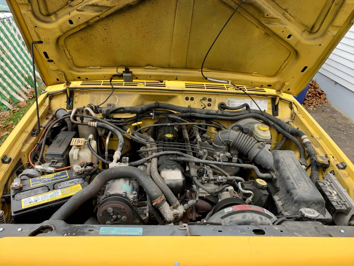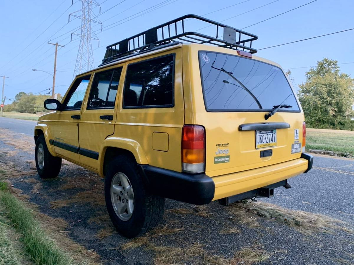 The Jeep is painted in taxi cab yellow, and that, along with a prominent roof rack, means you'll likely never have a problem spotting it in a crowded parking lot. The paint looks to be in decent shape with only a few boogers here and there to mar the aesthetic experience. It's actually not at all bad for a car that has over 200,000 miles under its tires.