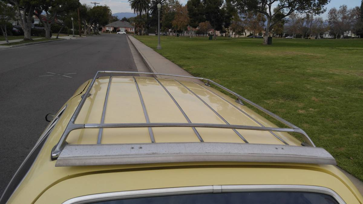 The bodywork looks to be straight although there does seem to be some rust poking through in the rear rockers. The 5-mph bumpers stand proud of the body, a design that makes it feel like they're repulsed by the association. The chrome coat on each looks good though, and there's a nice roof rack up top making the car a prime choice for holiday tree shopping.