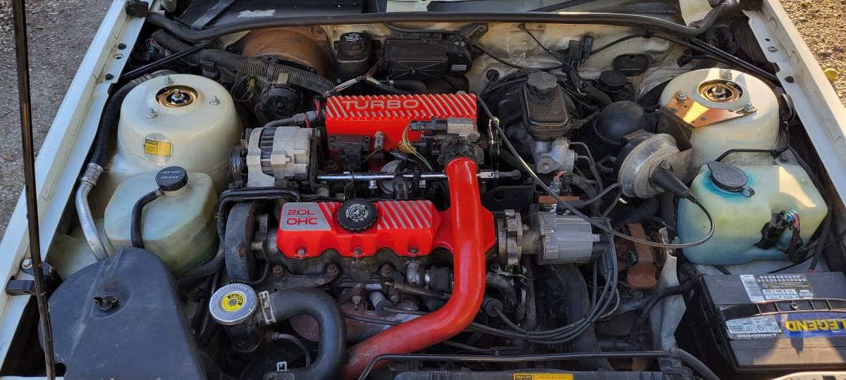 Of course, this one is of particular interest because of that 1991 cc SOHC turbo four that sits sidesaddle beneath the hood. Originally designed by GM subsidiary Opel in Germany, and given the LT3 designation here in the States, the multi-port fuel-injected four makes 165 horsepower and 175 lb-ft of torque. Here that's paired with a Getrag 282 five-speed manual, the same gearbox that found its way into the better versions of the Sunbird's sister sporty car, the Fiero. Imagine if that mid-engine commuter had been fitted with the Sunbird's turbo motor too. That would have put some sass in its ass.