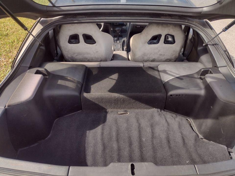 The bones, though, seem pretty good here. The car appears to be rust-free under the dull-as-dishwater paint, and, aside from some shenanigans on the driver's door, it seems straight as well. There is something seemingly amiss around the rear wheel wells though. Is the car missing the inner liners back there, or do all Z32s show light through the arches like that? Stock alloy wheels draw attention away from that issue and look to be in decent shape.