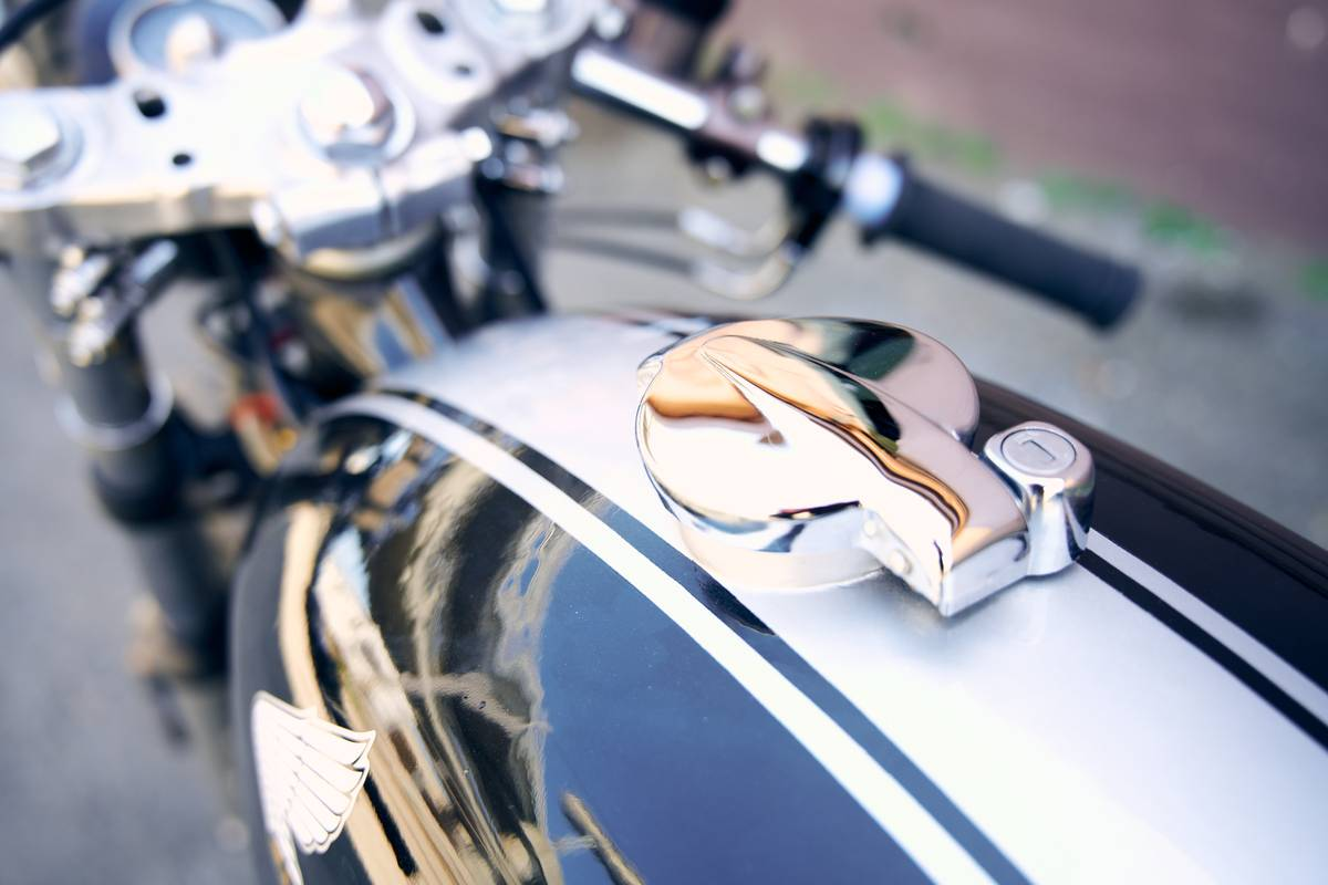 There's something about the simplicity of its central cam drive air-cooled design that makes the engine out as some kind of museum quality piece of art. I've seen them in stock bikes, in choppers, and café racers like this, as well as bare bones on the garage floor, and I'm always blown away by the clean and cool look.