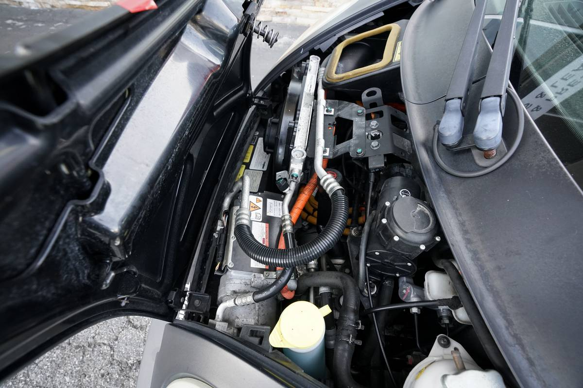 The City's bodywork is injection molded plastic and that rides on an aluminum spaceframe. Power is produced by a 25 kW 3-phase induction motor which sends its motivation to the front wheels via a fixed ratio gearbox. This one comes in matte grey with silver accents and some jaunty silver and red tape trim that's a bit of an acquired taste. It should be noted that all the Citys came in a matte finish as that's the plastic coloring not a paint.
