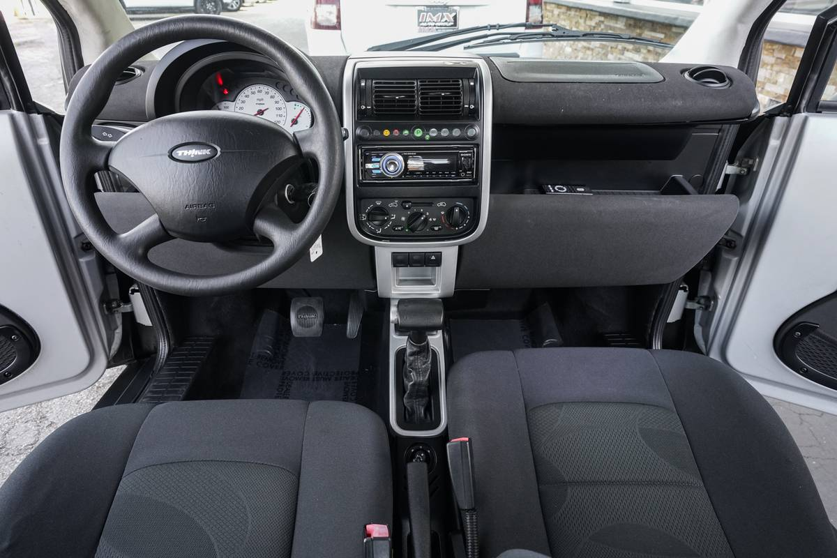 This 2011 Think City is one of the about 2,500 of those cars produced between 2007 and 2011. It was built via a knock-down kit in Elkhart, Indiana by the subsidiary company, Think North America Inc. Its lithium-ion batteries were sourced from EnerDel in nearby Indianapolis. Those batteries can store a maximum of 23kWh and that provides the car with a range of between 80 and 100 miles. Regenerative braking (front discs/rear drums) help with that and make the range better in urban stop and go driving than on the open road.