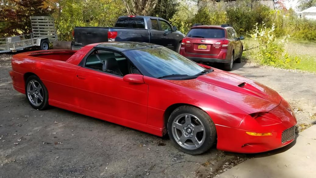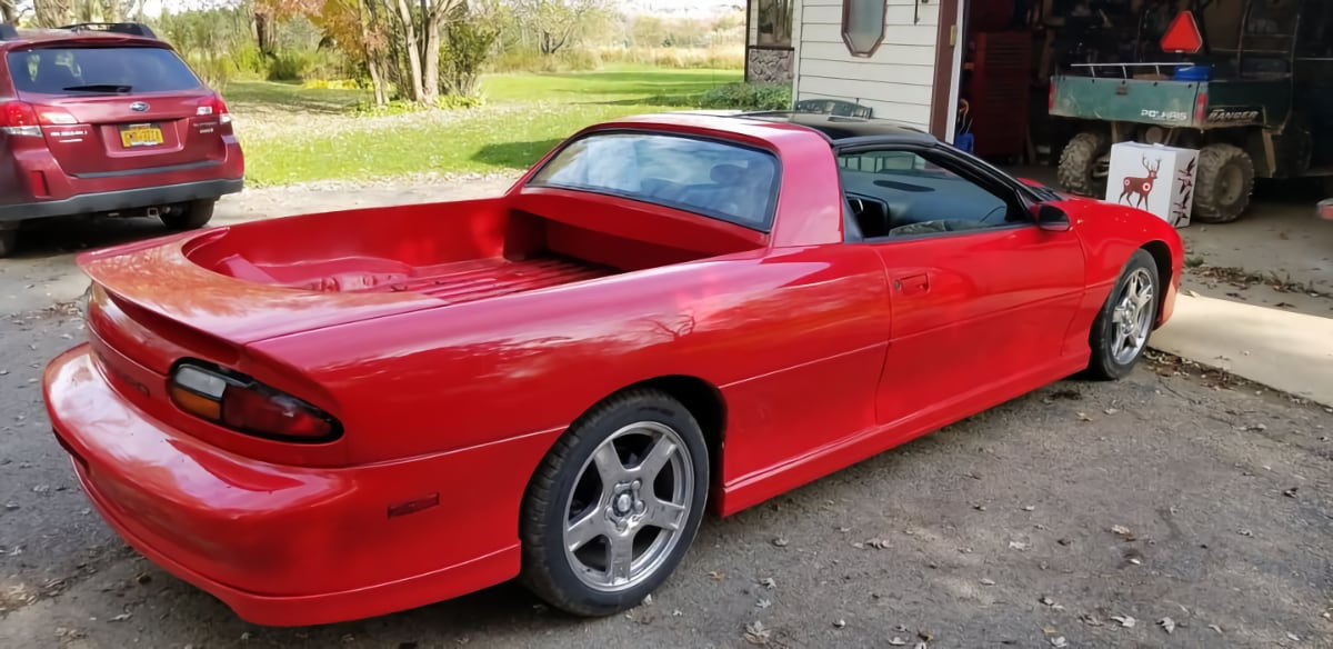 What could you do with such a clever Camaro? Well, the seller says you could use it to haul "your bike, your bed, a keg, or your pot belly pig." How enjoyably versatile. The ad further cautions that, as modified, the car will only seat two, lest you think it has some kiddie seats crammed in somewhere.