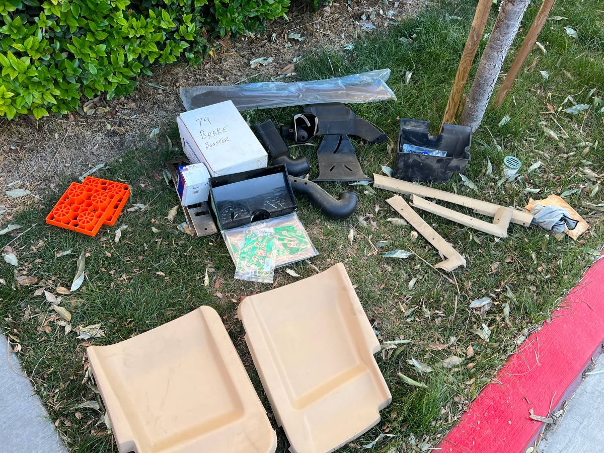 Inside, things are a bit hit or miss. The leather on the seats looks perfectly serviceable, however, everything around those seats is either a bit grungy or actually AWOL so we can't tell the condition. Hopefully, the parts bin that comes along with the car has all the parts necessary to put Humpty-Dumpty back together again. It should also be noted that this is an automatic transmission car, in case that colors your opinion.