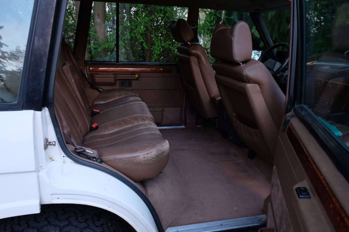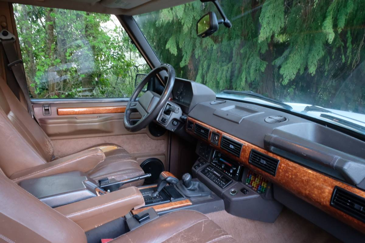 The interior benefits from a redone headliner—yet another place where Land Rover quality seems perennially lacking—and a good bit of leather and wood. The bolster seam on the driver's throne has split its stitching and is in need of repair, but other than that it all looks reasonably serviceable.