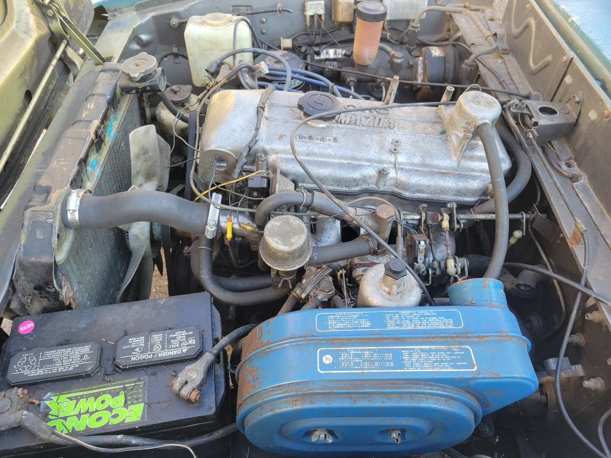 When Mazda entered the North American market, it hadn't yet gone whole-hog on the Wankel. As such, the 1800 has a — get this — an 1800 cc SOHC inline-four under its hood. This was an enlarged version of the earlier 1500 cc four and with its taller cam cover required the addition of a bump in the center of the hood for clearance. With its leading-edge scoop, that looks like something cobbled up after the fact, but it is factory original.
