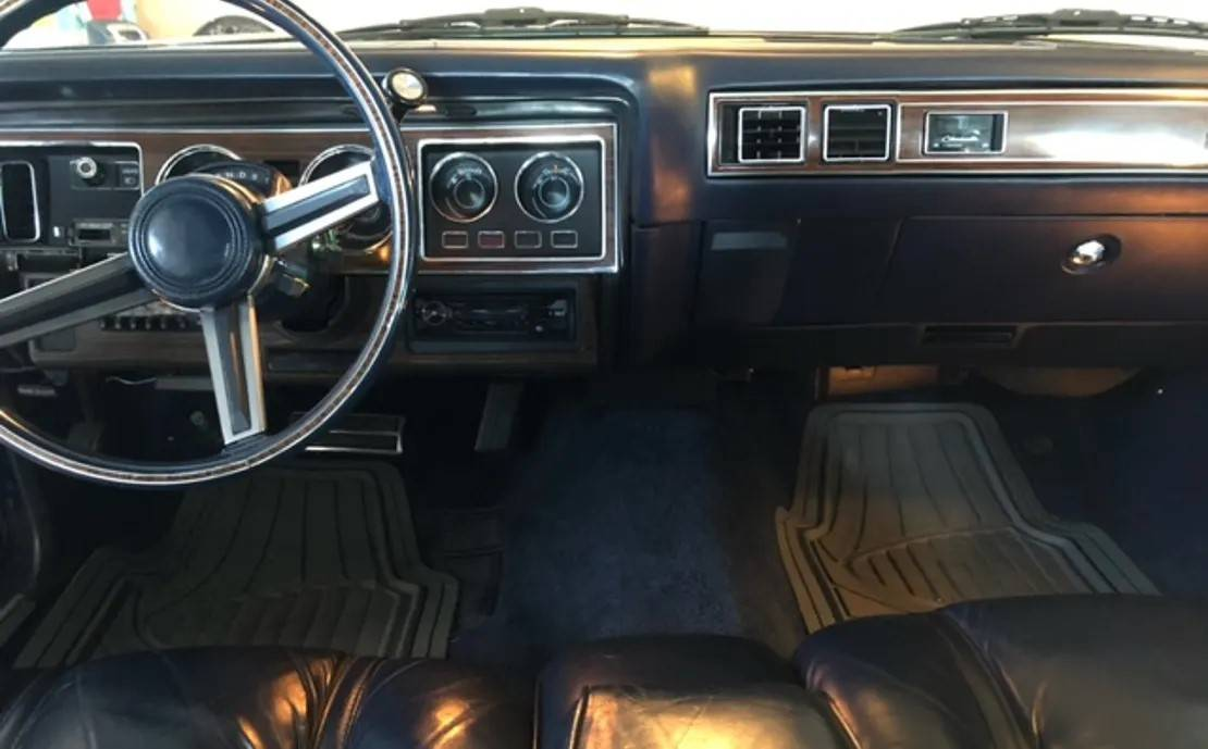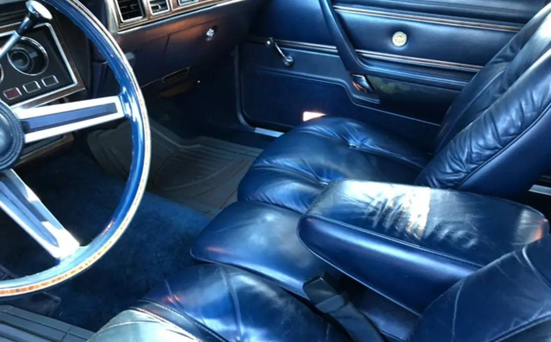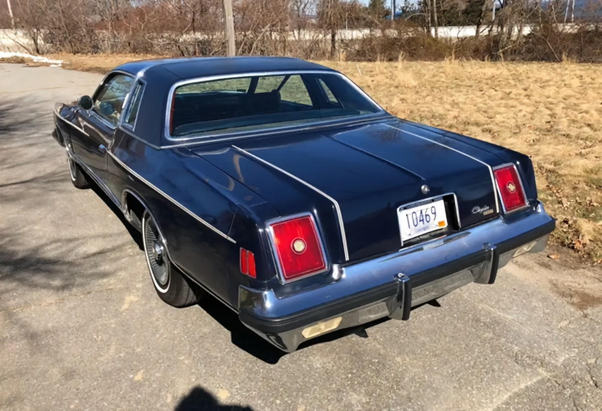 This one appears to be an amazing survivor, having done a mere 69,000 miles per the ad. That very same ad also claims that the Cordoba still wears its original Chrysler Midnight Blue paint and color-coordinated vinyl landau roof. For the most part, the bodywork looks to be in good shape. There is a sizable dent on the left-front fender though. That appears to be the result of something having fallen on the car rather than an interaction with another car or object. Aside from that, all the chrome — and there's a lot of it — seems to be in great shape, as do the turbine-style wheel covers which are wrapped in era-appropriate whitewall tires.
