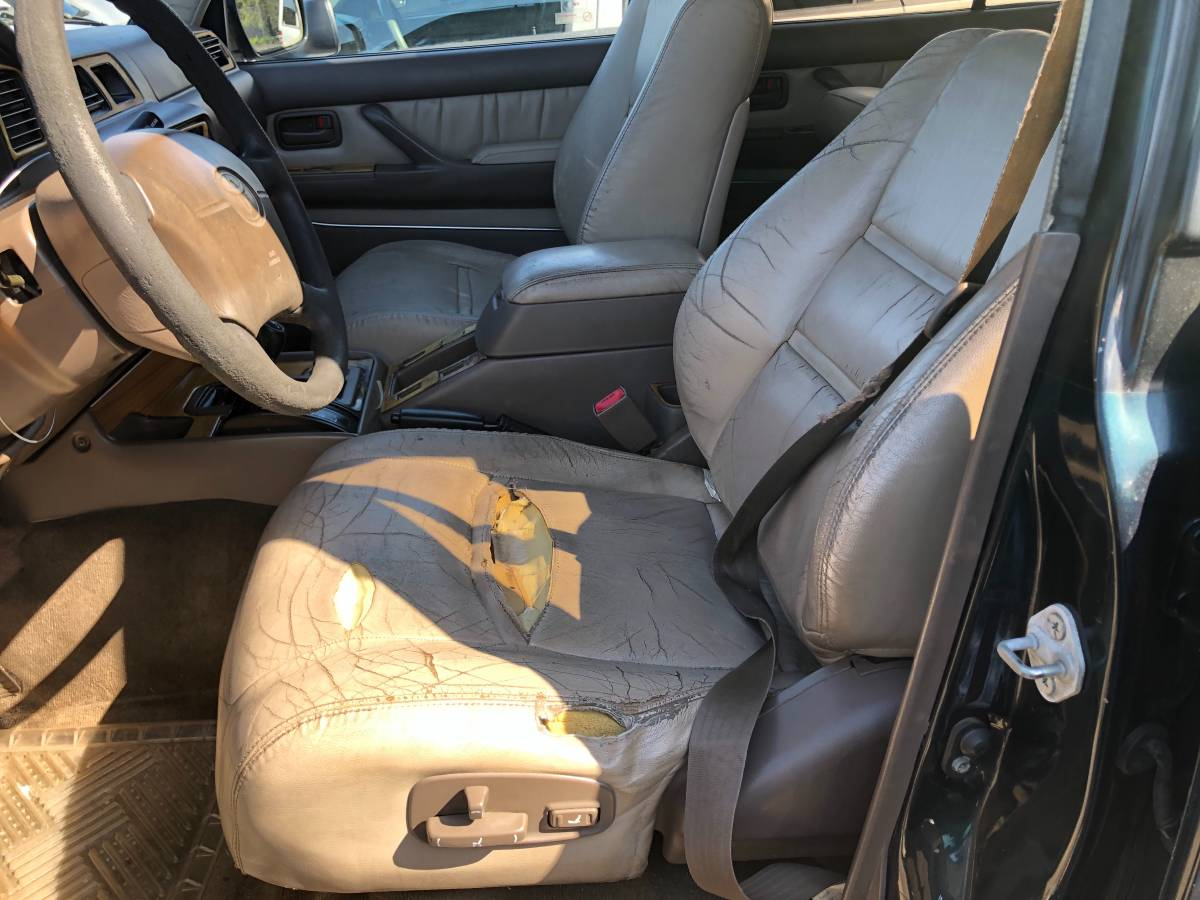 This being a Toyota of a certain age, you're likely to spend less time under the hood and more time in the cabin driving the thing. That's where this Land Cruiser starts to lose some of its appeal. The leather cabin has seen better days, with splitting evident on the two front buckets and all the surfaces looking like an elephant's saggy ass. On the plus side, there are three rows here and some aftermarket wood trim that will likely be satisfying to peel off the first weekend of new ownership.