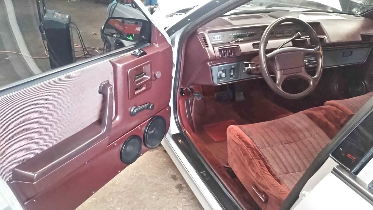 The original sound system was apparently considered as underpowered as the engine and has been replaced with an aftermarket head unit along with multiple speakers both in the doors and crowding the trunk. Since Facebook Marketplace doesn't require title status and the seller didn't add that info to the description we'll have to just assume that the car carries a title free of encumbrances. The car does wear Pennsylvania plates but I can't tell if the tags are current or not.