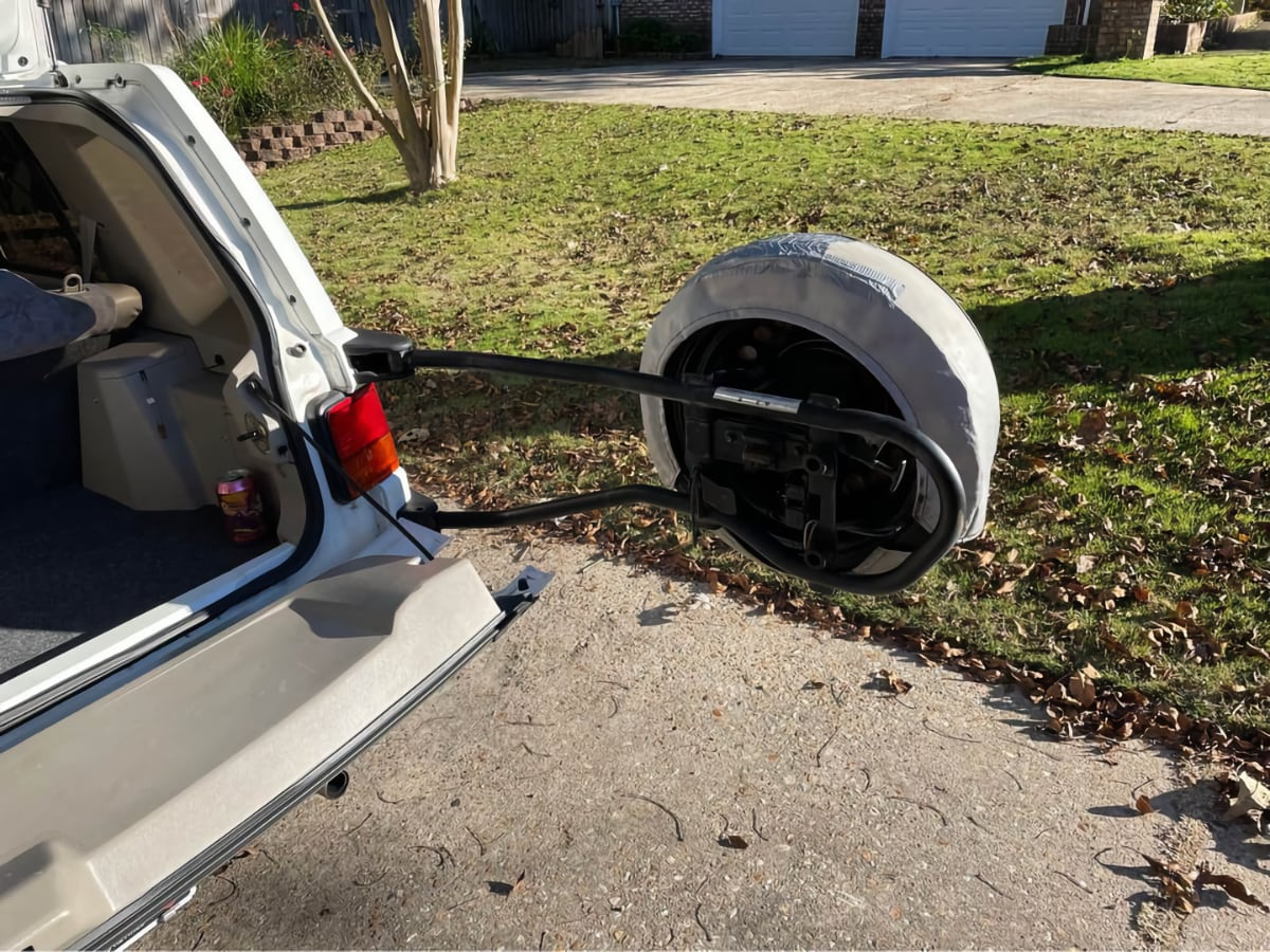 Aesthetically, the Rasheen seems to be in pretty good shape, although the seller does point out some blemishes in the paint, including a good-sized chip on the roof and some abrasions on the hatch. That hatch, by the way, is a practical split affair but is impacted in our market by having the spare tire mount swing out to the right, or curbside. That's not that big a deal and the upper hatch offers plenty of access with the spare in place. Aftermarket wheels underpin and wear new tires. The seller says that the original wheels "are available" implying that they are an extra add-on to the car's purchase.
