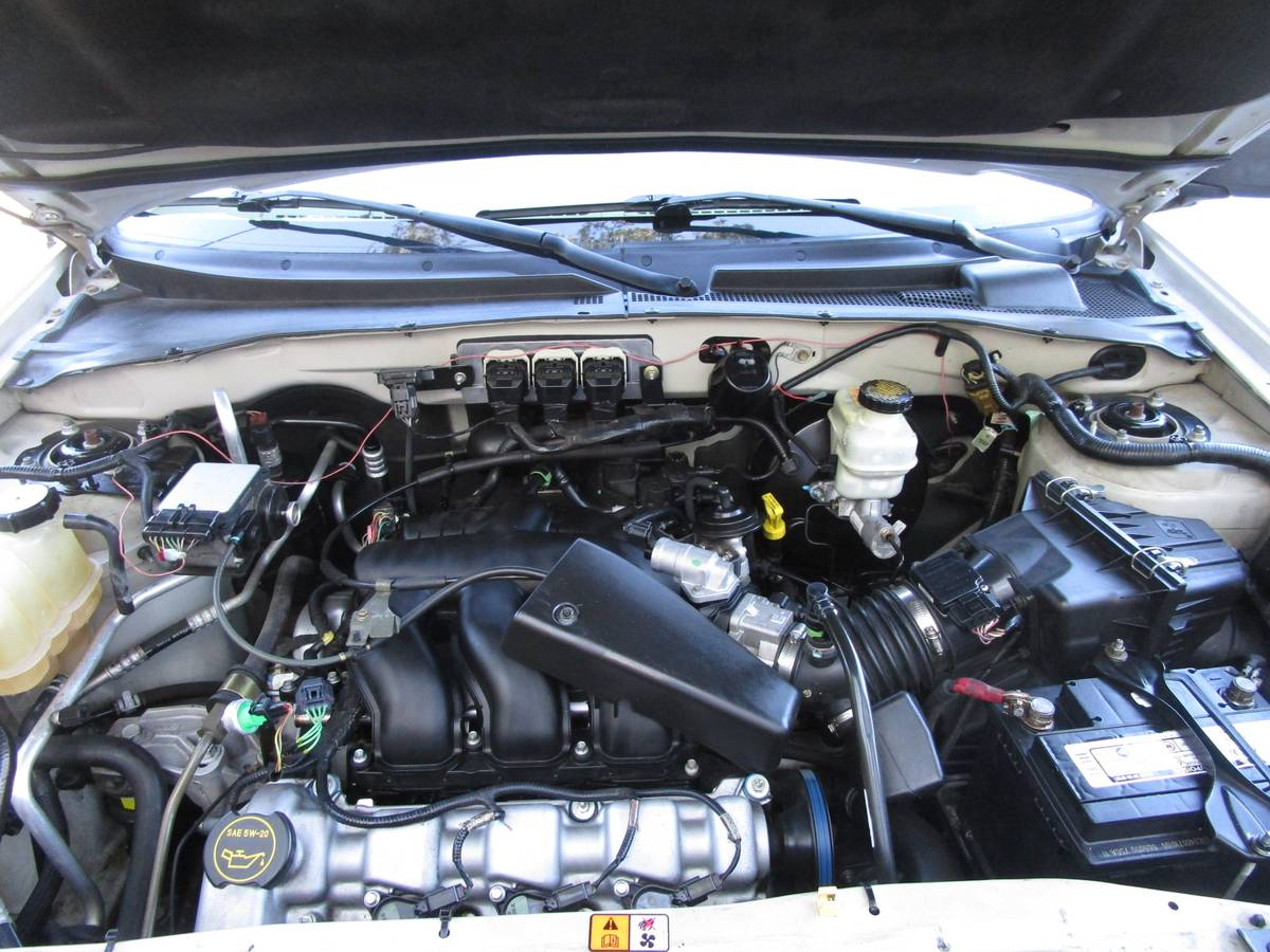 The cabin shows a little more wear, but it's pretty light and nothing seems broken. This is an XLT, but thankfully, it has the harder-wearing standard cloth upholstery instead of the seemingly less durable optional leather. It has all the basics covered—A/C, power windows and locks, tilt-wheel, and cruise control. It also has a number of updates, including a Pioneer stereo with GPS Nav, and interestingly, one of those old Parrot cell phone bridges. Aside from those, everything is claimed to be an all-original on this one-owner Escape.