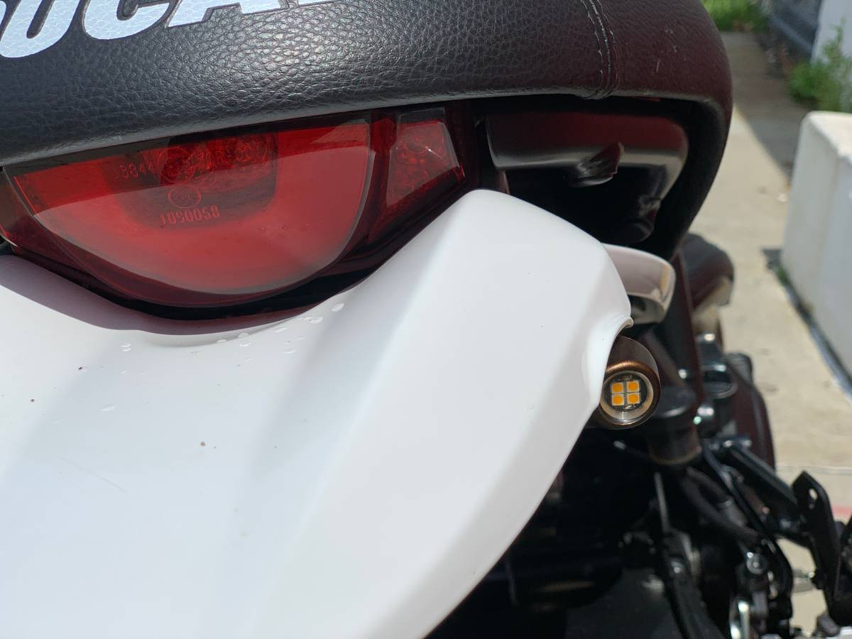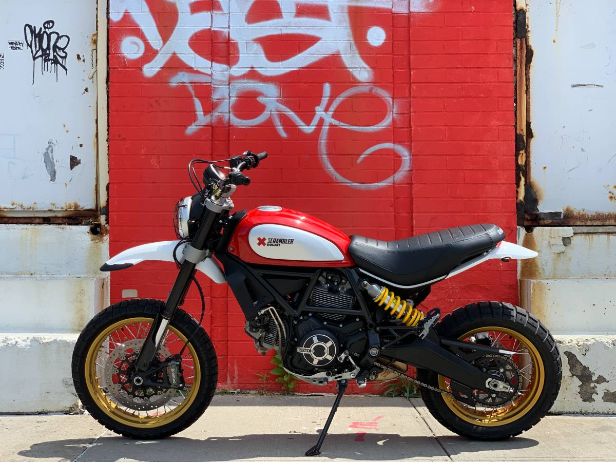 This '17 model shows a mere 4,800 miles and is described by its seller as being "Like New." The red-and-white color scheme looks fresh and contemporary and pairs well with the gold anodized wire-spoke wheels. The turn signals have apparently been switched out for smaller LED units, but the bike appears to be otherwise stock.