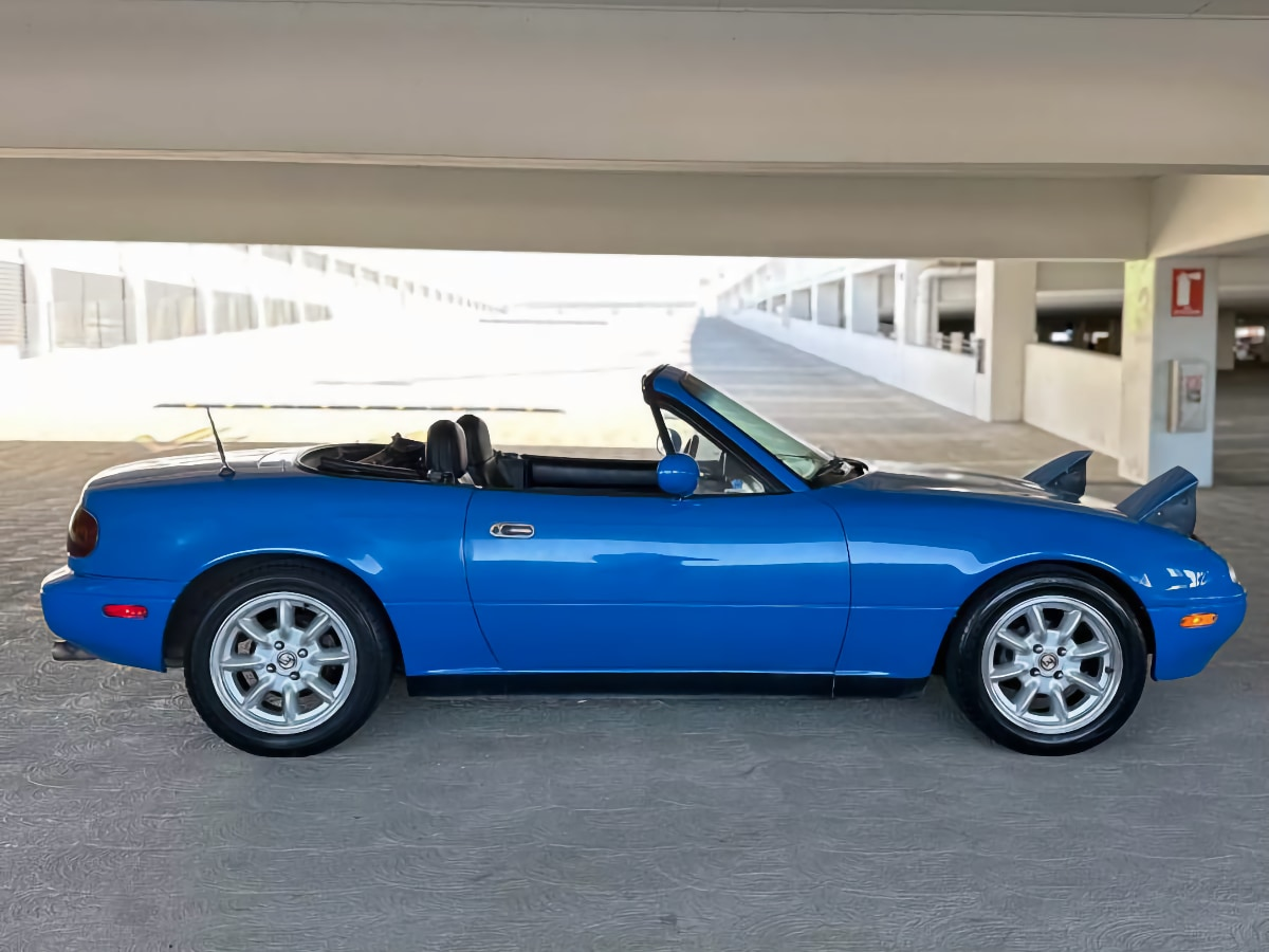 Based on the pictures, you wouldn't know that by looking at it. The paint still pops, and the top, trim, and minimal brightwork all seem in great shape. In fact, the only apparent signs of the car's age are a faded MAZDA badge amid some peppering on the nose and some curb rash on the wheels.